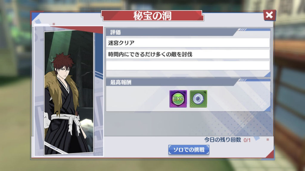 戦闘形式のコンテンツが多いけど「ソロクイズ」はブリーチに関するクイズの正解数に応じて報酬がもらえる!