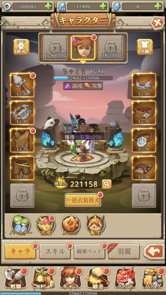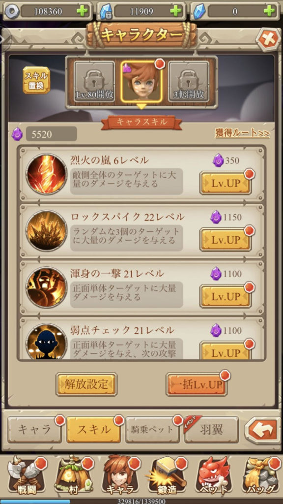 他にもキャラ・スキルなどのレベルアップも一括で可能なのでストレスフリー♪