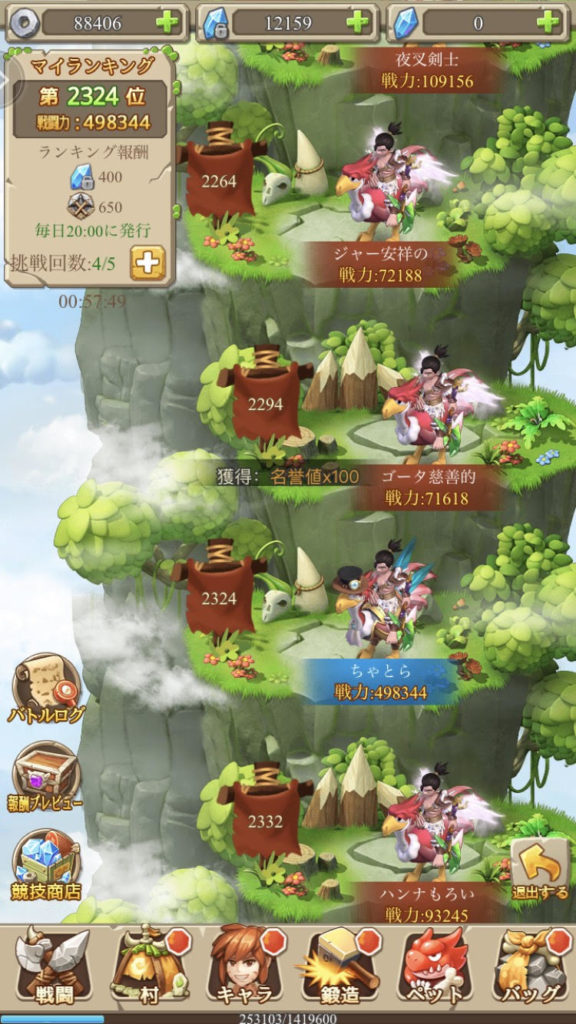 少しでも上位を目指すなら自分の戦力が相手の戦力より高いほうが有利になるので見極めて勝負を挑んでみよう!