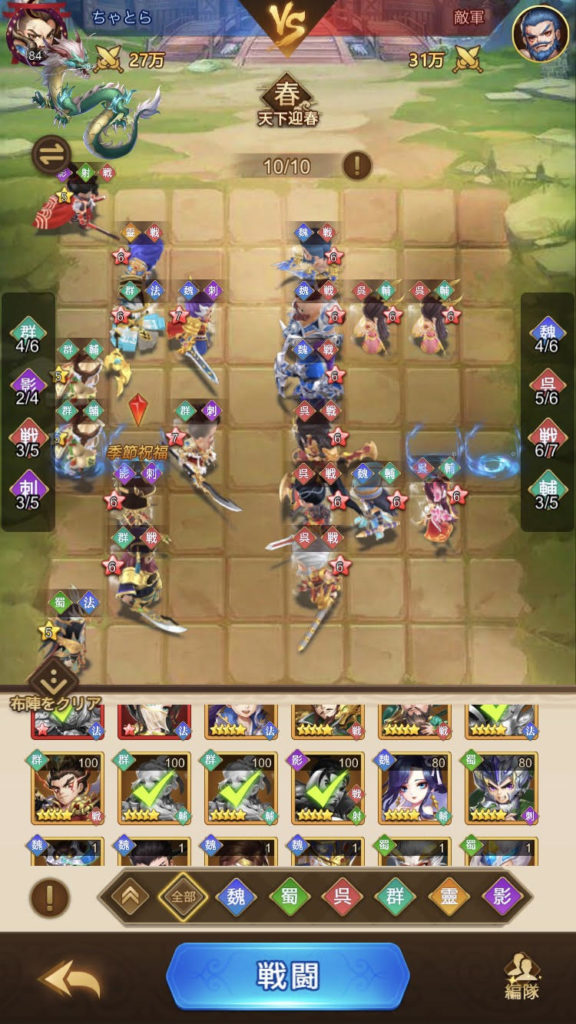 また敵との相性も考えてキャラ編成をするとさらに勝率は上がる。