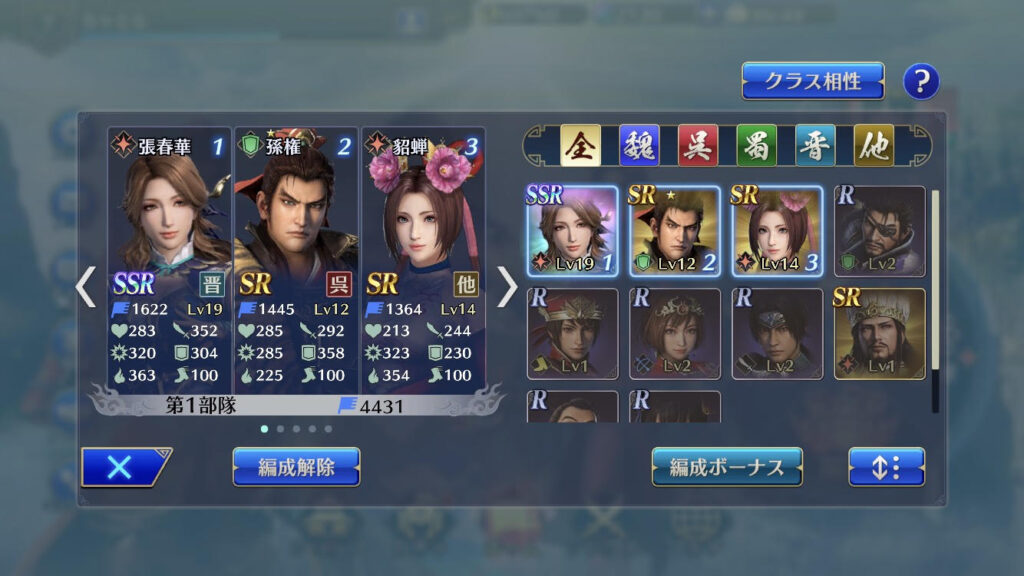 ちなみに敵と関係のあるキャラを編成するとステータスにボーナス追加